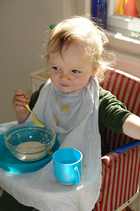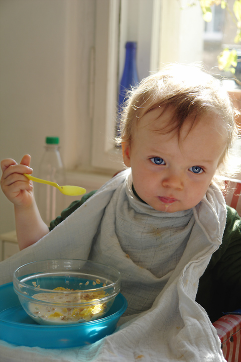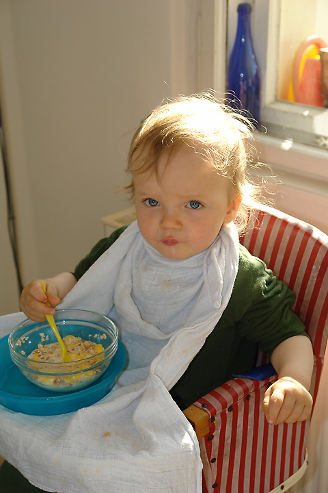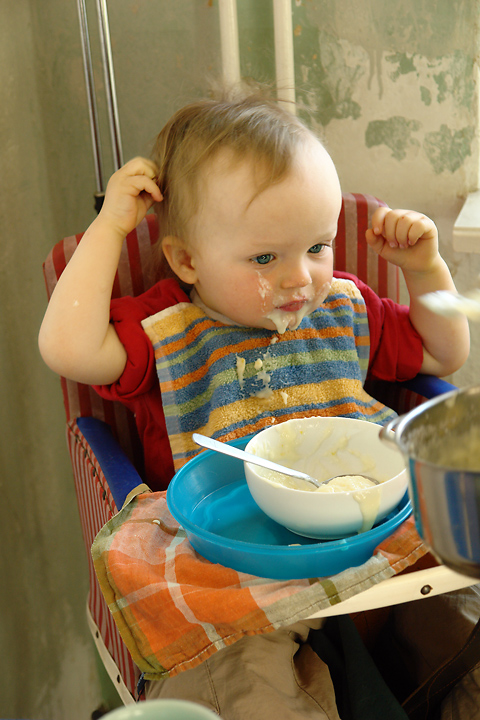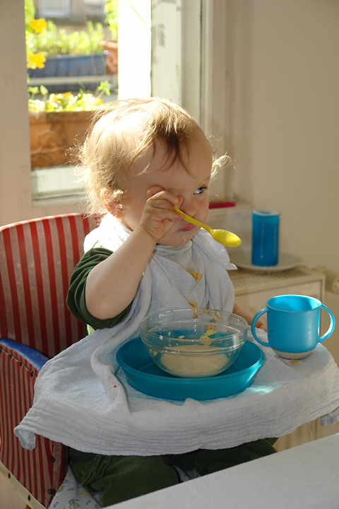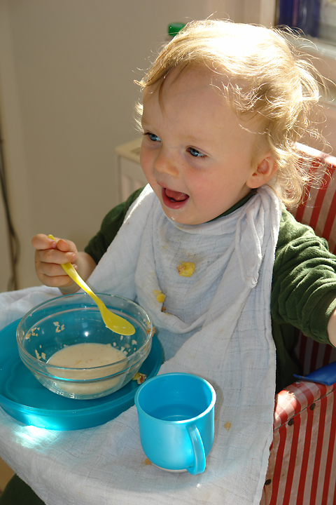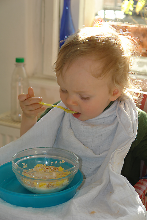 ... und ein Frühstück (noch mit Brei) vor ein paar Wochen vor noch ganz anderen Wänden.