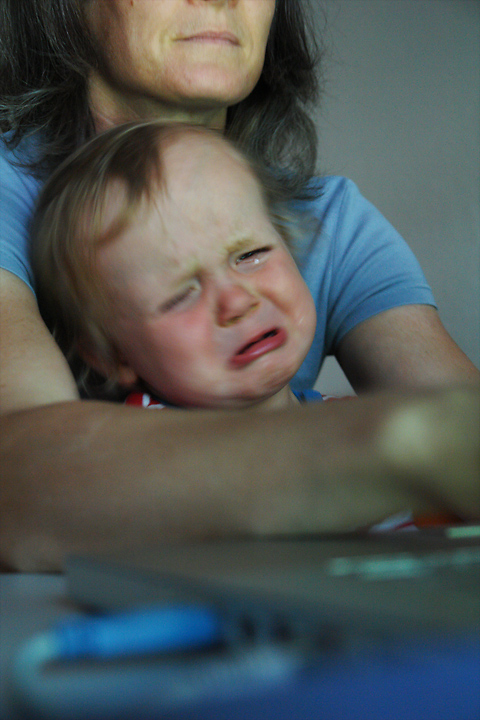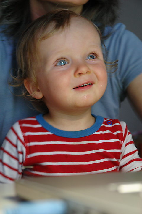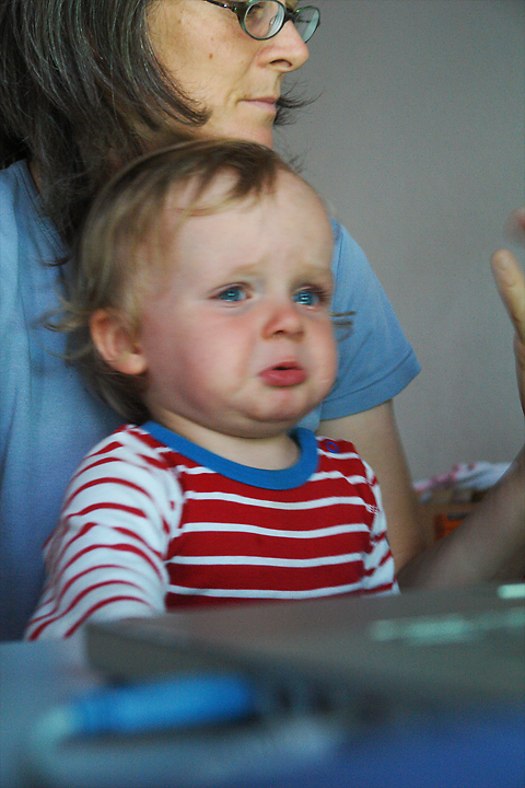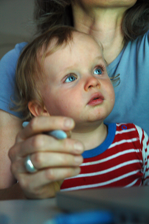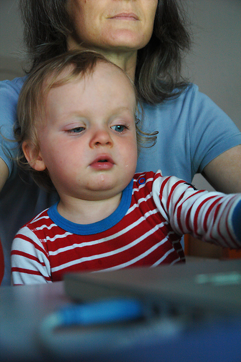 H. mit seiner Mutter vor dem Computer... den er zu seinem Frust nicht anlangen darf.