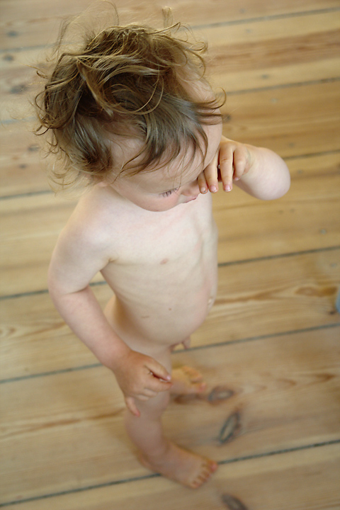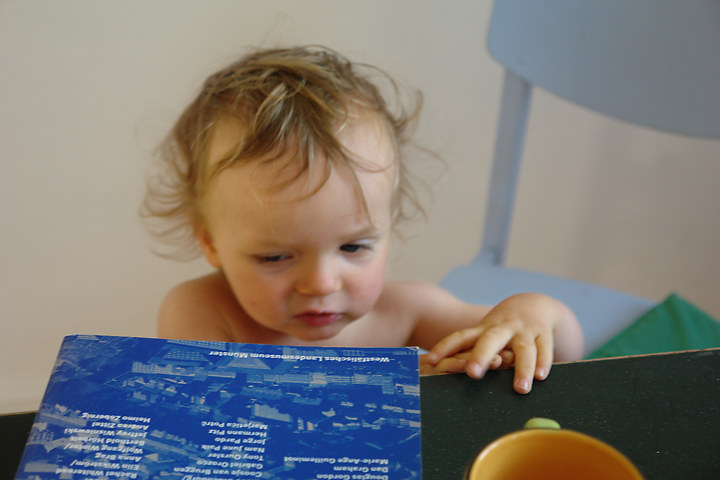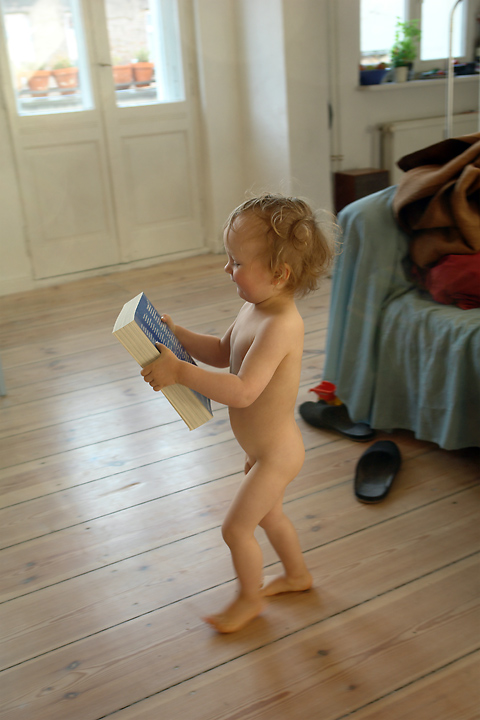 Nackt und mit dem Katalog zu